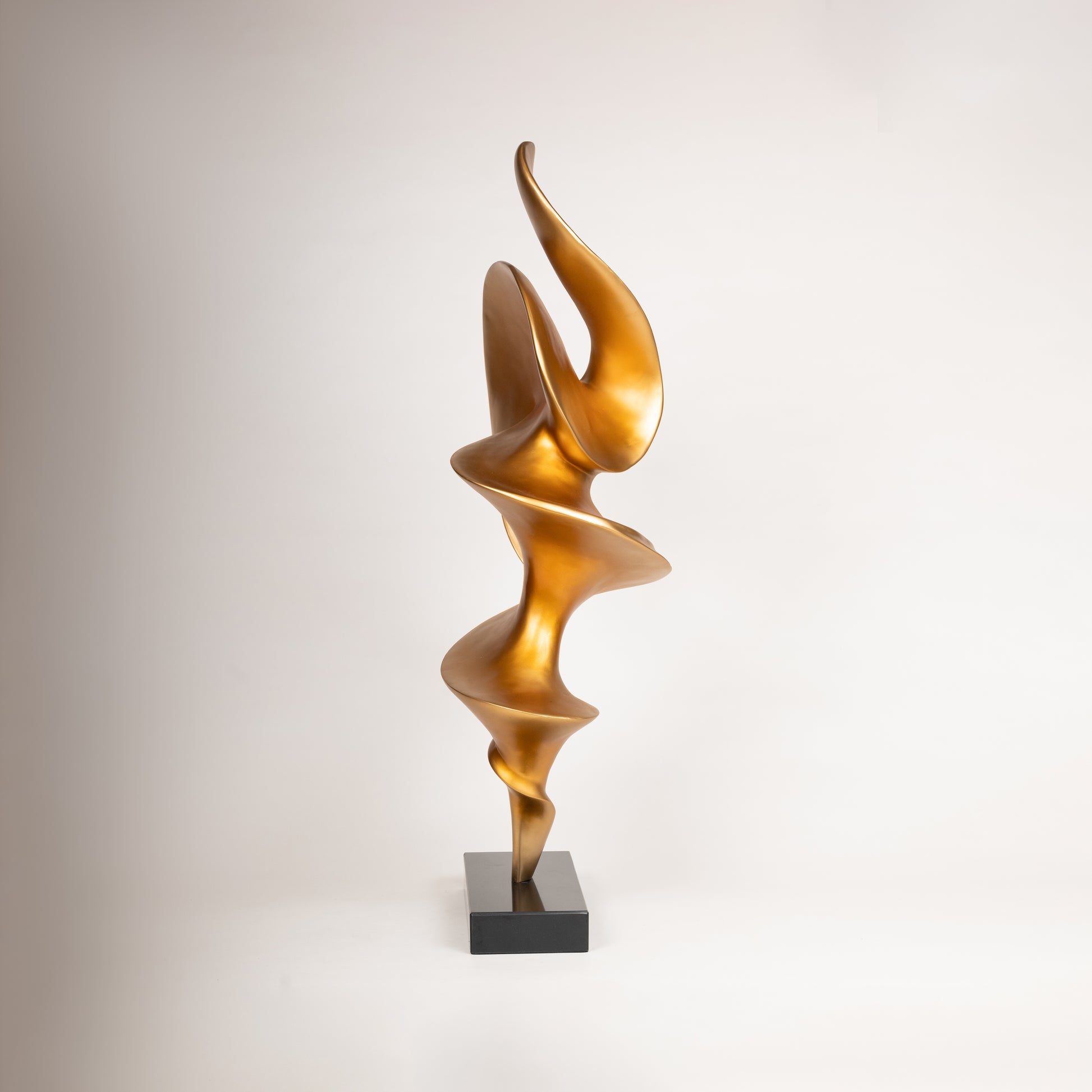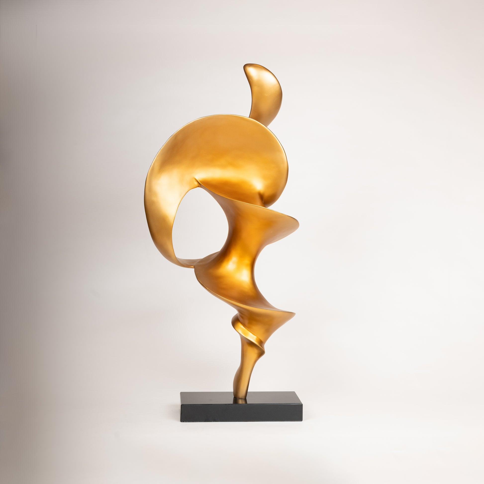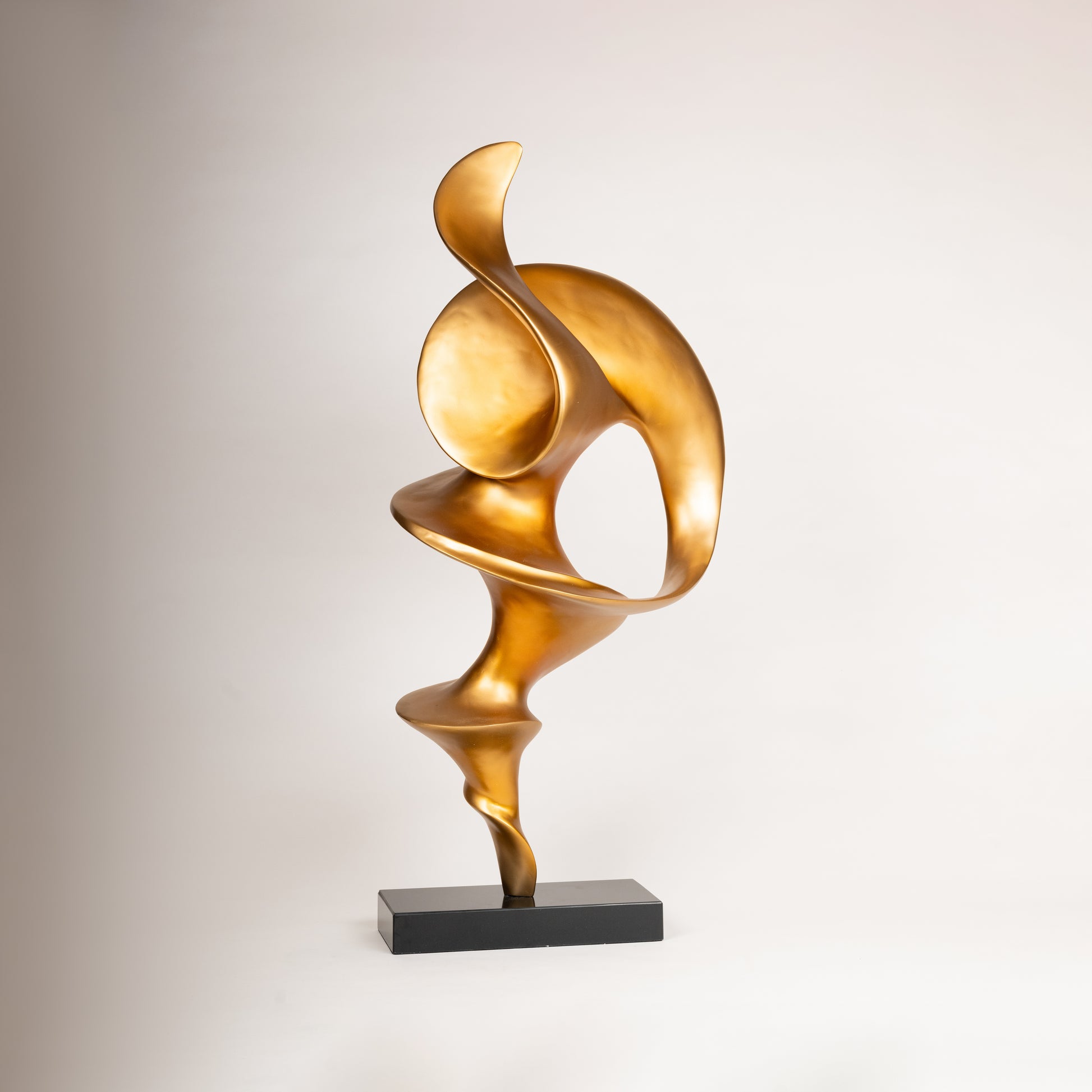 A captivating blend of fluidity and elegance, the Abstract Golden Harmony Sculpture is a masterpiece of modern artistry. Crafted with a sleek gold finish and a dynamic, flowing form, this sculpture embodies movement, balance, and sophistication. Mounted on a contrasting black base, it serves as a striking focal point for luxury interiors, adding a touch of contemporary refinement to any space. Perfect for homes, offices, or galleries, this statement piece is designed to inspire and impress.