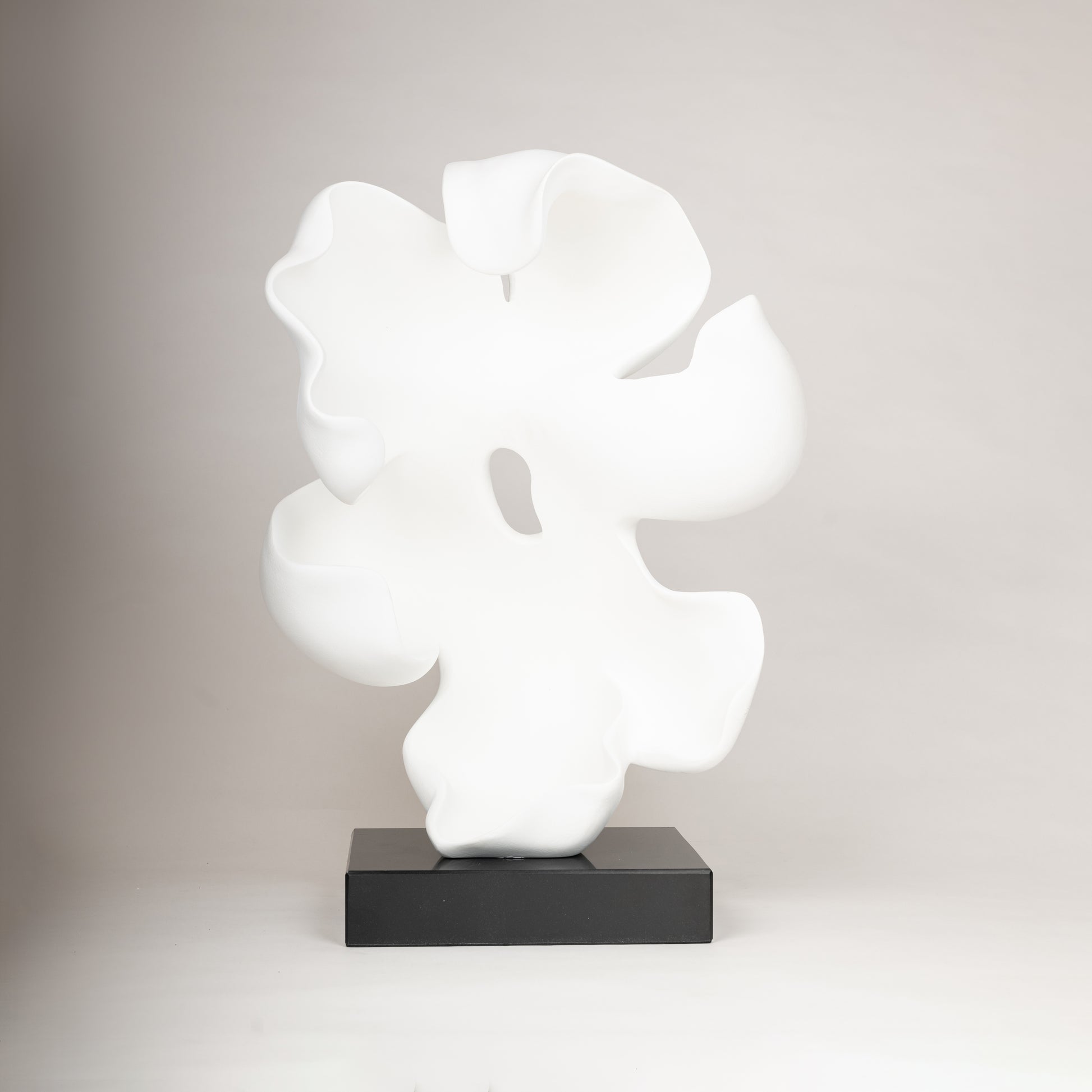 The Abstract White Cloud Sculpture is a captivating fusion of organic form and modern artistry. Crafted in a fluid, cloud-like shape, this piece exudes an ethereal elegance, making it an ideal addition to contemporary interiors. The soft, sculptural curves give the illusion of movement, while the smooth white finish enhances its minimalist appeal. Resting on a sleek black base, this statement piece brings a sense of tranquility and sophistication to any space, whether displayed in a living room, office, or gallery setting.