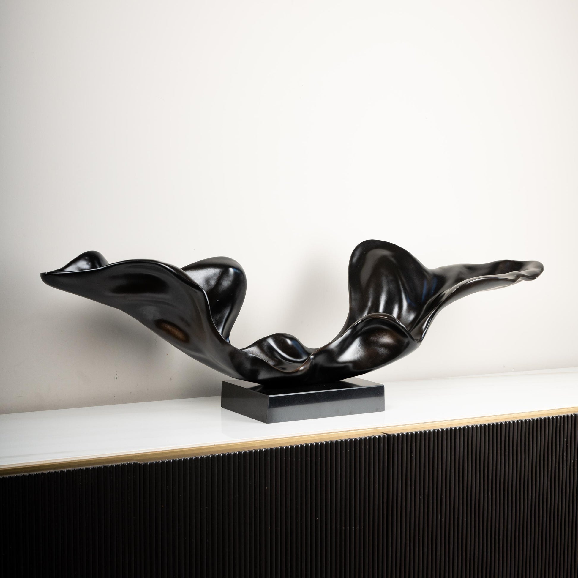 Grace meets modern artistry in the Celestial Flow Sculpture, a mesmerizing decor piece that embodies movement and elegance. With its fluid, ribbon-like form and metallic gradient finish, this sculpture evokes a sense of harmony and sophistication. Resting on a sleek black base, it serves as a striking statement piece for console tables, shelves, or office spaces. Perfect for contemporary and minimalist interiors, this sculpture adds a touch of luxury and artistic expression to any setting.