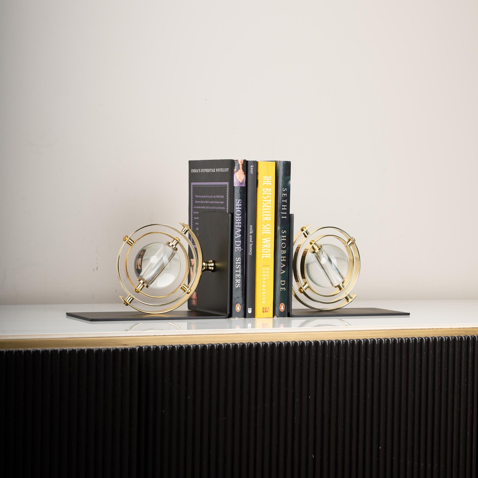 Elevate your library or workspace with the Celestial Orb Bookends—a stunning blend of modern design and classic luxury. Each bookend features a sleek, gold-toned sphere perched on a polished marble base, providing both visual appeal and reliable support for your favourite reads. Perfect for adding a touch of sophistication to any shelf or desk, these bookends bring a refined yet contemporary statement to your décor.