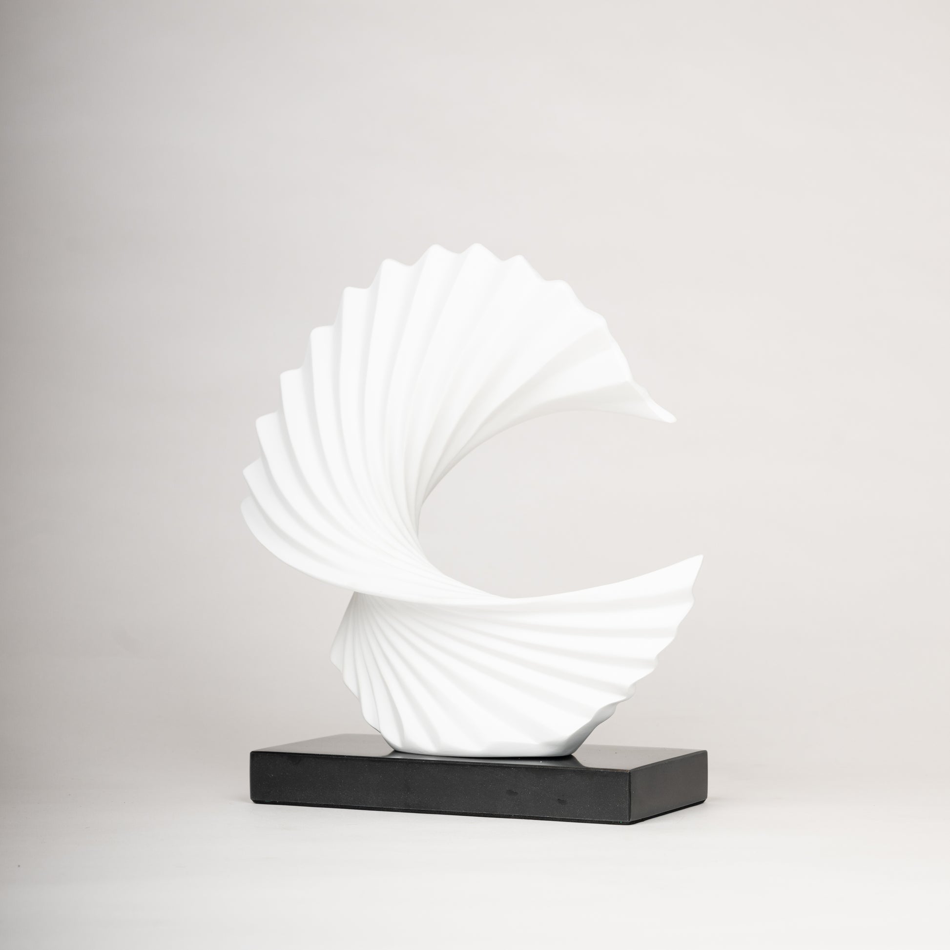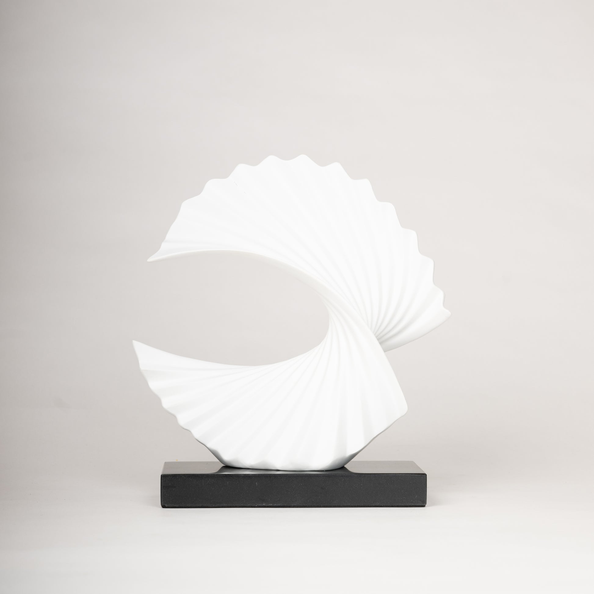 Elevate your space with the Elegance Swirl Sculpture, a stunning modern decor piece designed to add sophistication and artistic flair to any room. Crafted from high-quality materials, this white sculptural masterpiece features a dynamic, flowing spiral design that embodies movement and harmony. The contrast between the crisp white structure and the sleek black base enhances its visual appeal, making it a perfect centerpiece for living rooms, offices, or entryways. Whether placed on a console, shelf, or side table, this timeless sculpture is sure to captivate and impress.