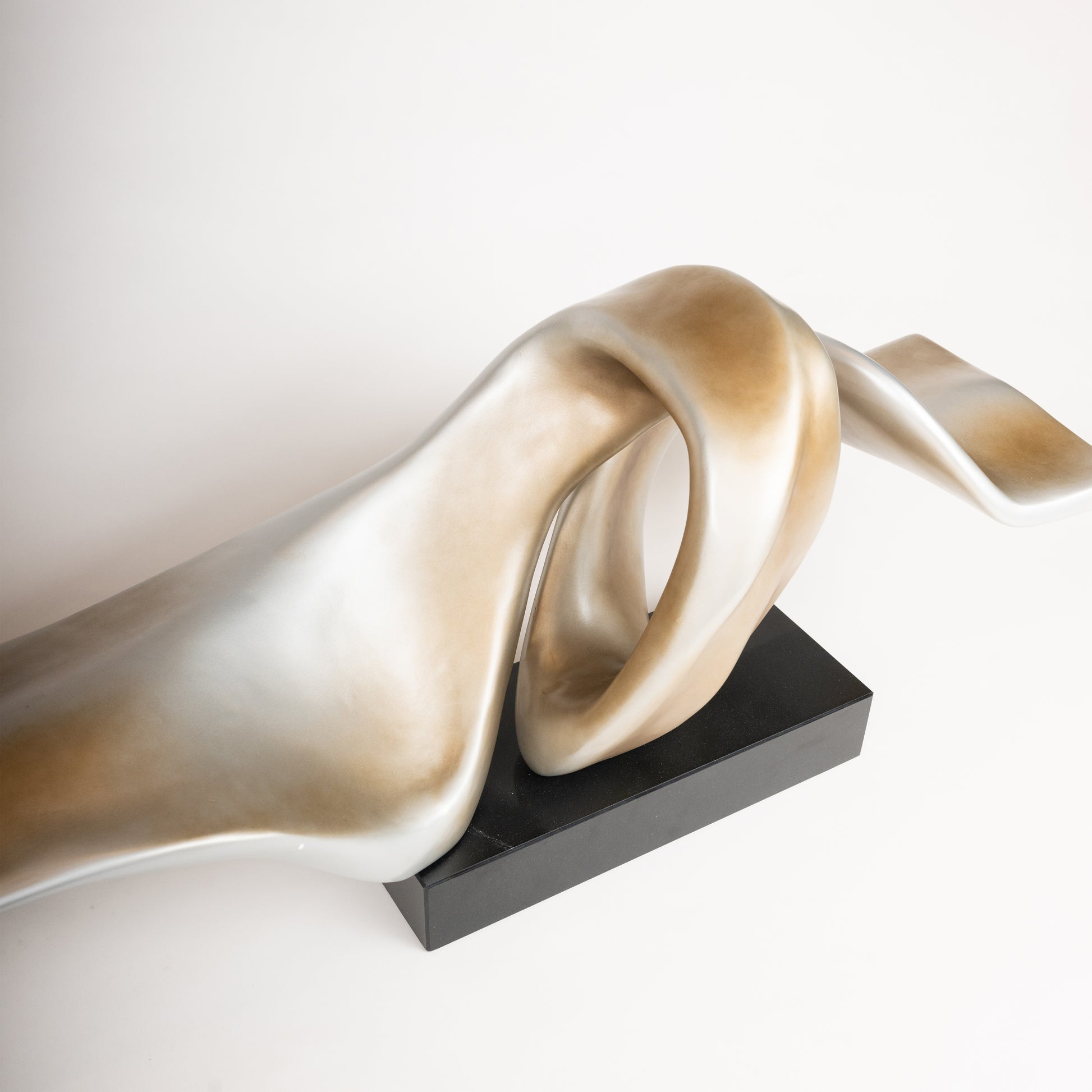 A stunning fusion of modern elegance and fluid artistry, the Ethereal Flow Sculpture captures the essence of movement and grace. Crafted from high-quality materials with a smooth metallic finish, this piece adds a touch of sophistication to any space. The organic, flowing design symbolizes harmony and creativity, making it a perfect statement piece for contemporary interiors. Display it on a console, coffee table, or mantel to elevate your decor with its unique charm.