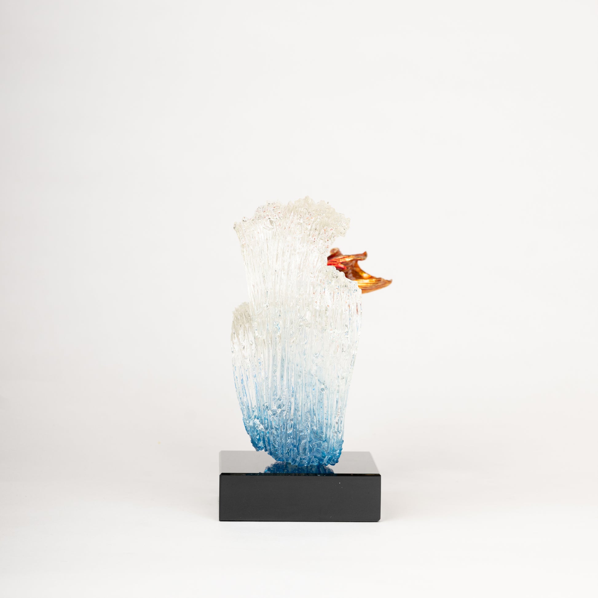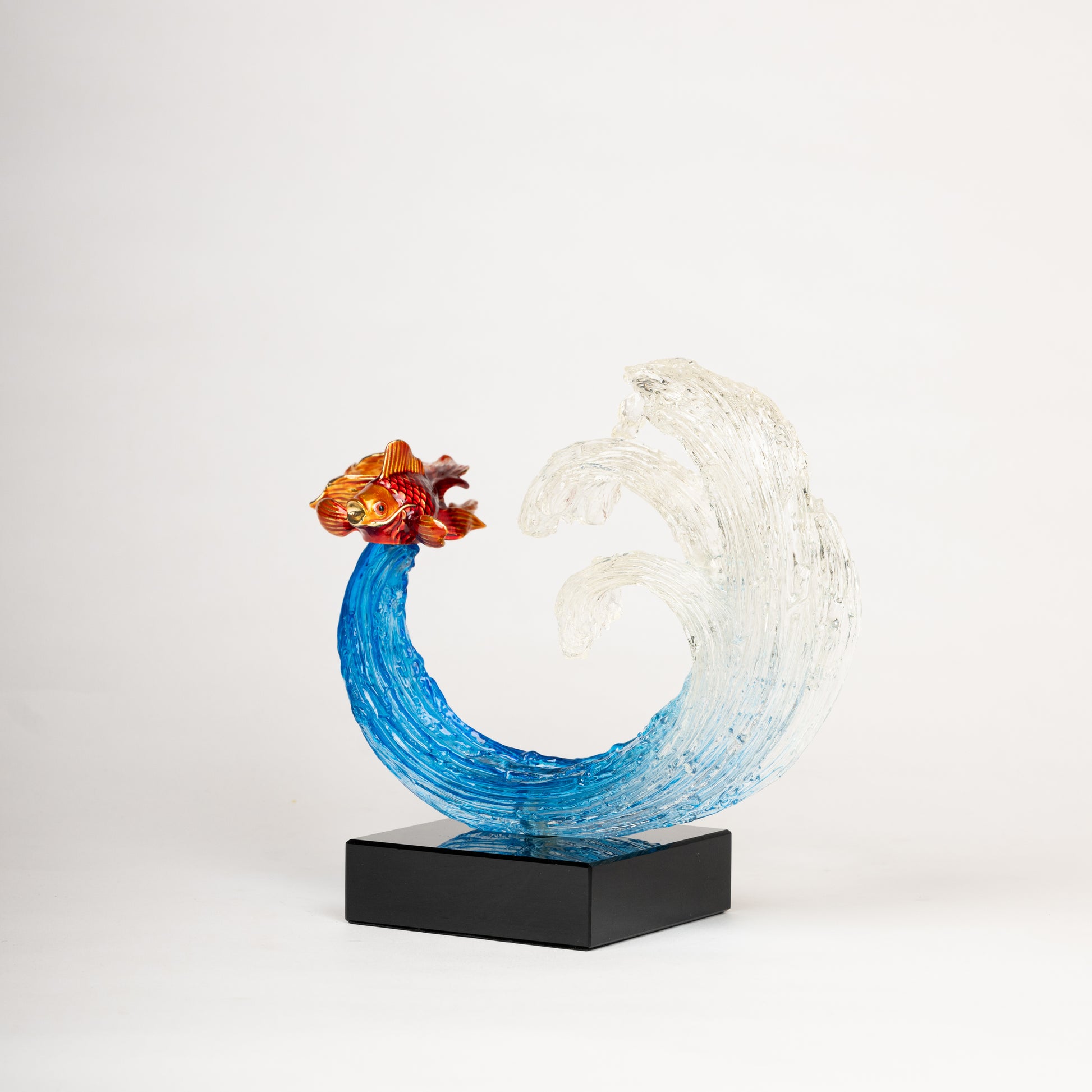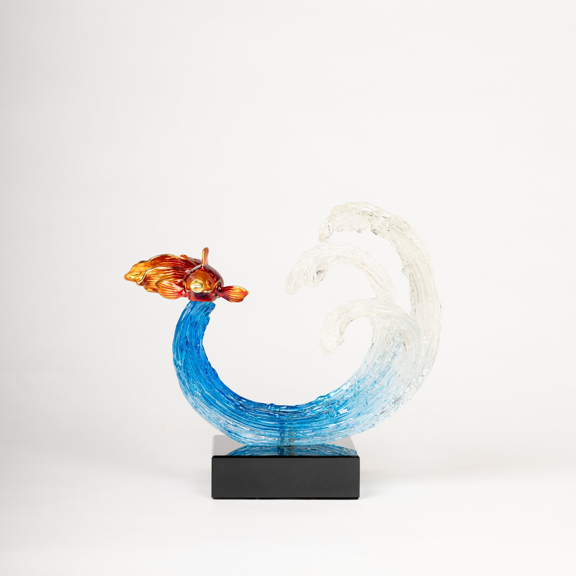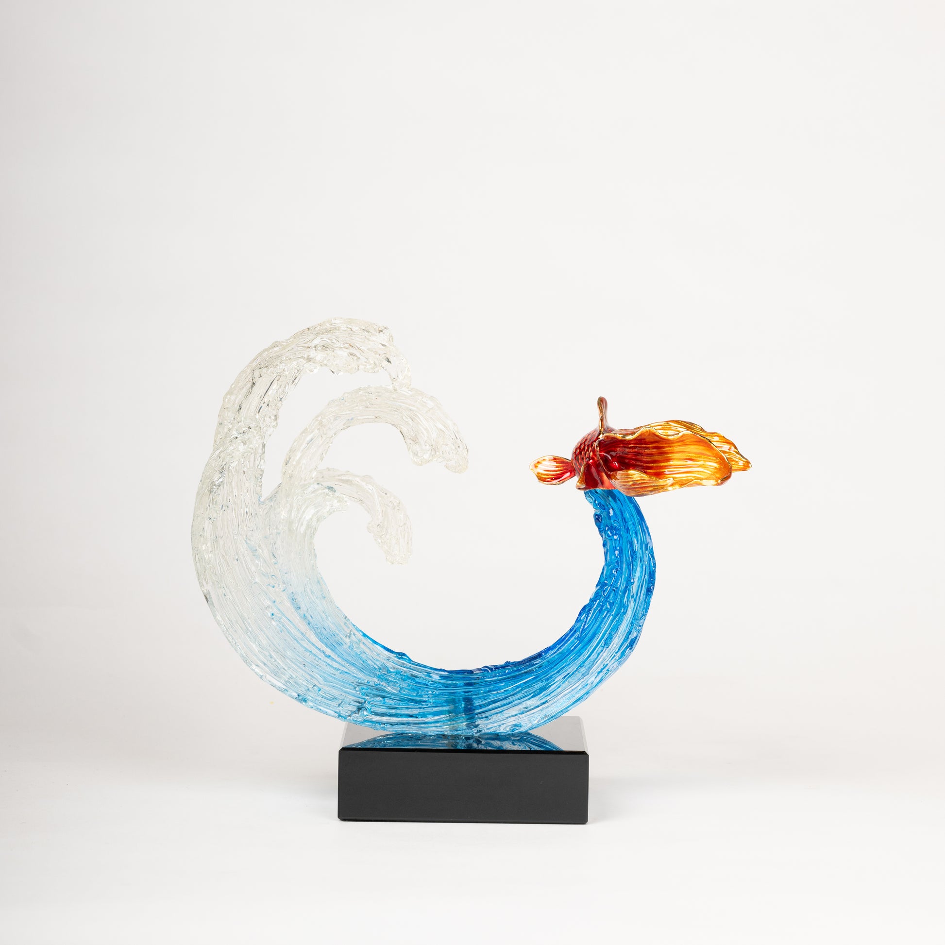 Glass Ocean Wave Sculpture with Goldfish