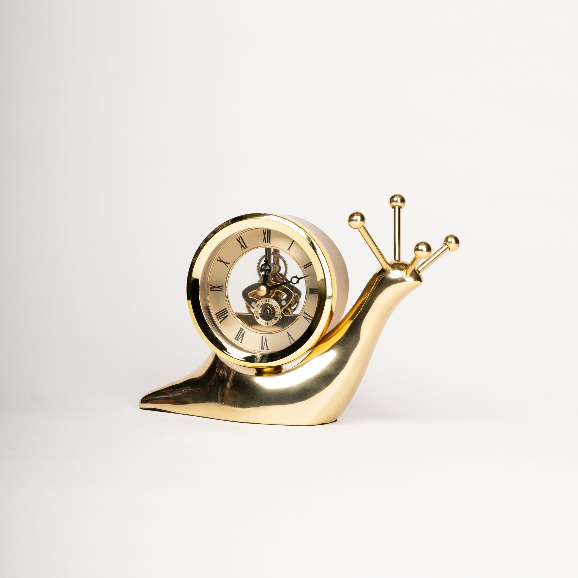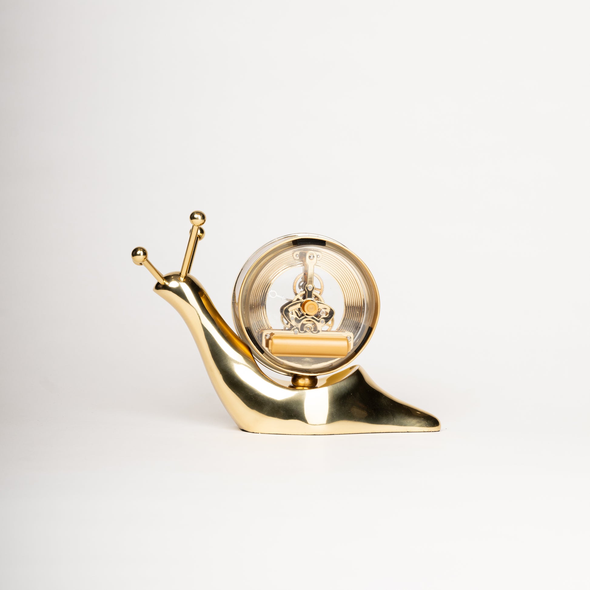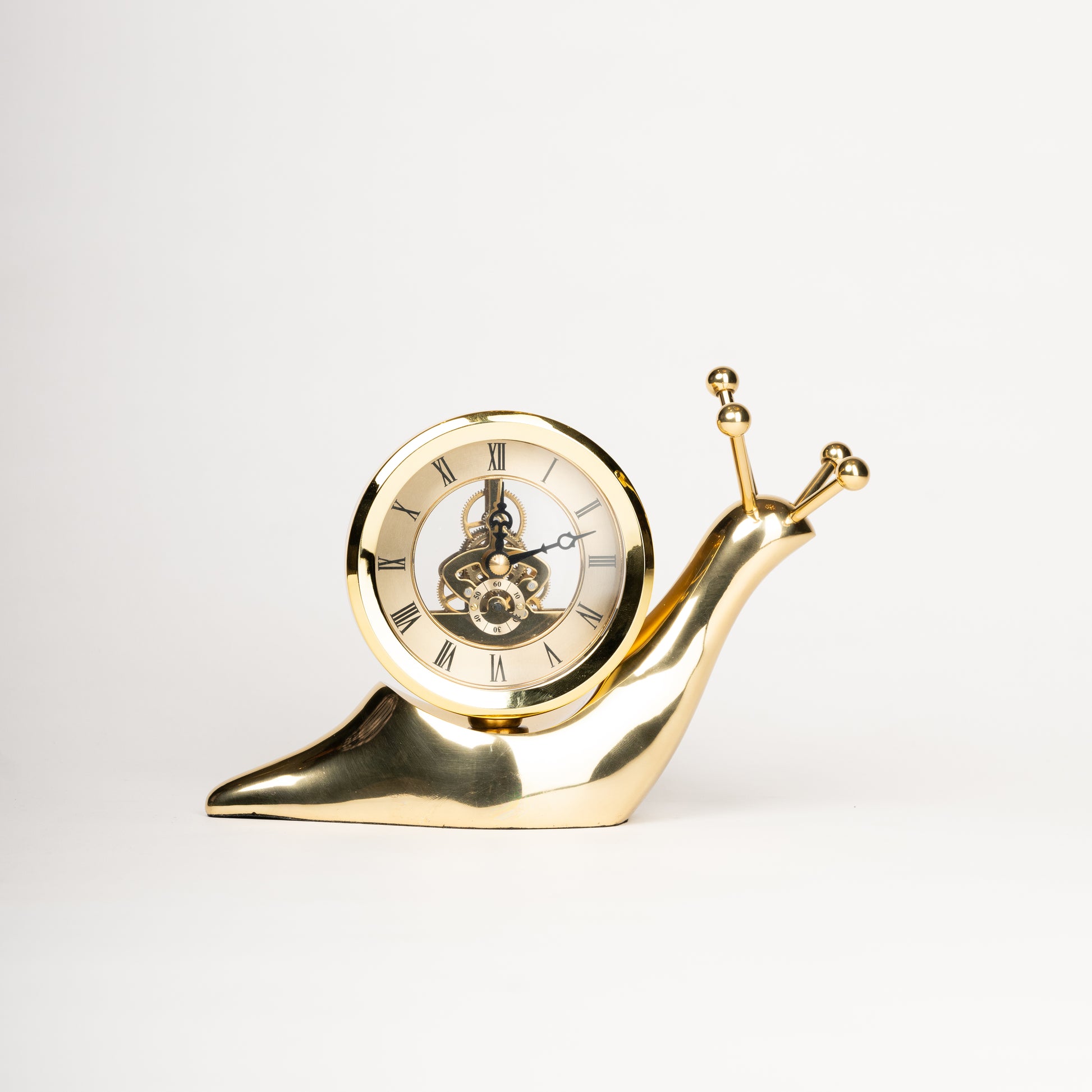 A symbol of grace, patience, and timeless beauty, the Golden Snail Clock Duo is a luxurious fusion of art and functionality. Designed with a sleek golden finish, these charming snail-shaped clocks bring a whimsical yet elegant touch to your space. The open mechanical-style clock face adds a vintage charm, making it a statement piece for modern and classic interiors alike. Let time flow gracefully in your space with the Golden Snail Clock Duo, a perfect blend of elegance, creativity, and precision.