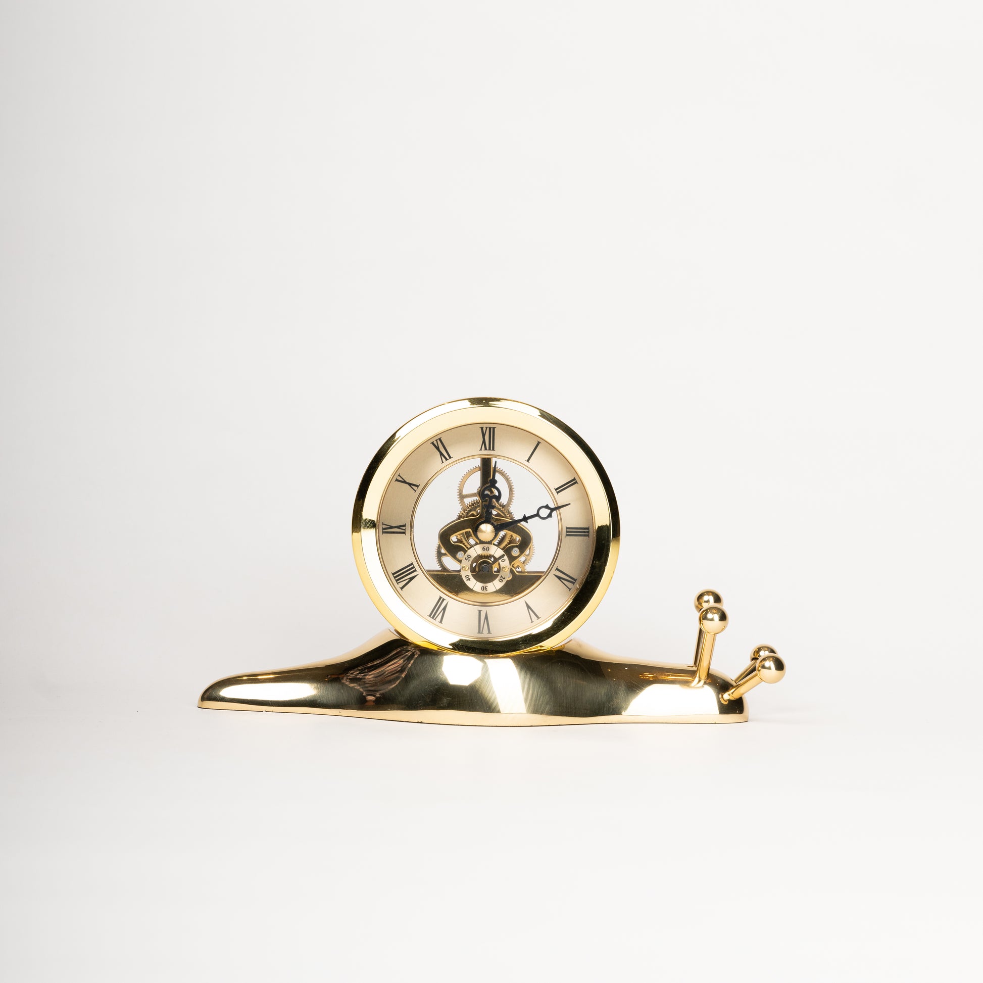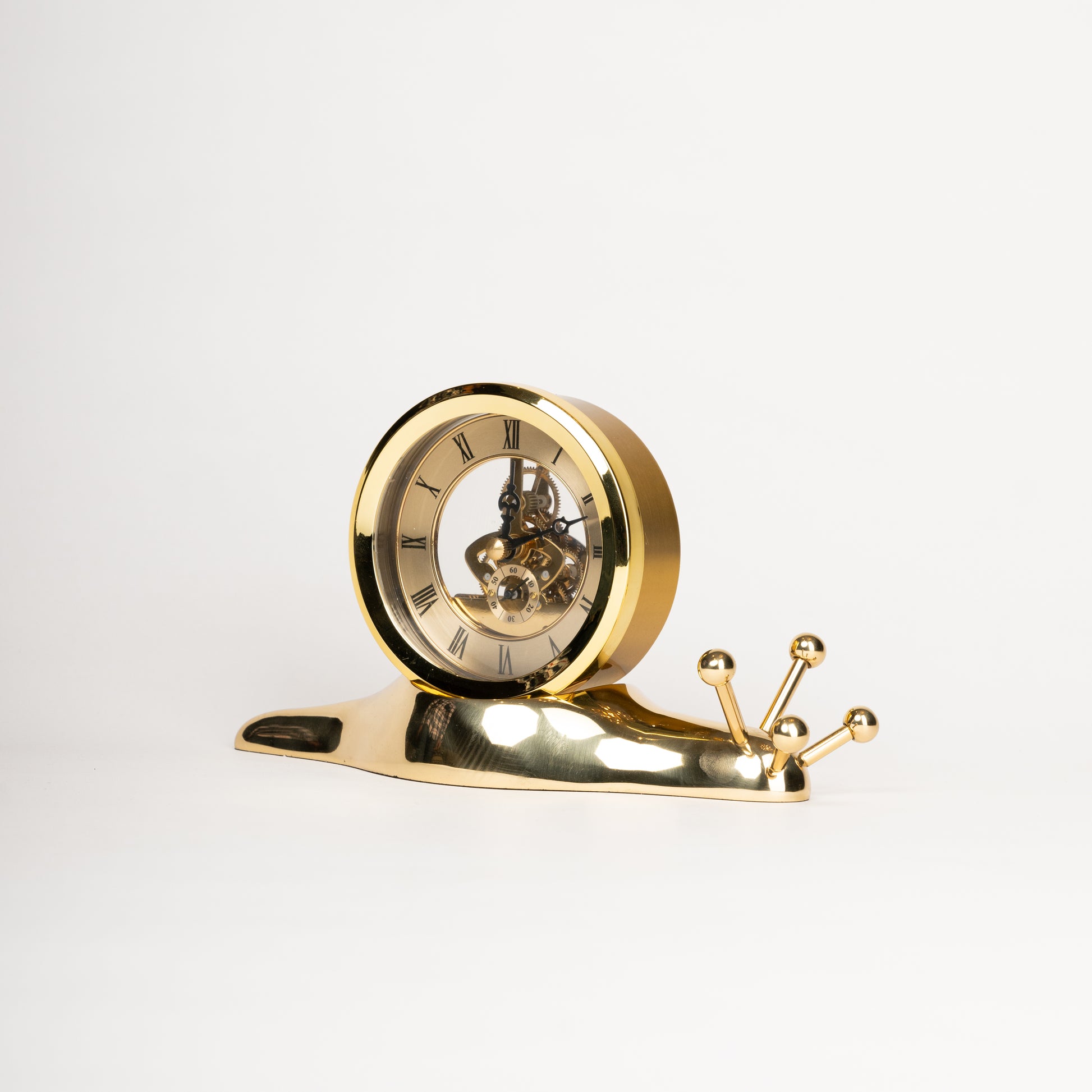 A symbol of grace, patience, and timeless beauty, the Golden Snail Clock Duo is a luxurious fusion of art and functionality. Designed with a sleek golden finish, these charming snail-shaped clocks bring a whimsical yet elegant touch to your space. The open mechanical-style clock face adds a vintage charm, making it a statement piece for modern and classic interiors alike. Let time flow gracefully in your space with the Golden Snail Clock Duo, a perfect blend of elegance, creativity, and precision.
