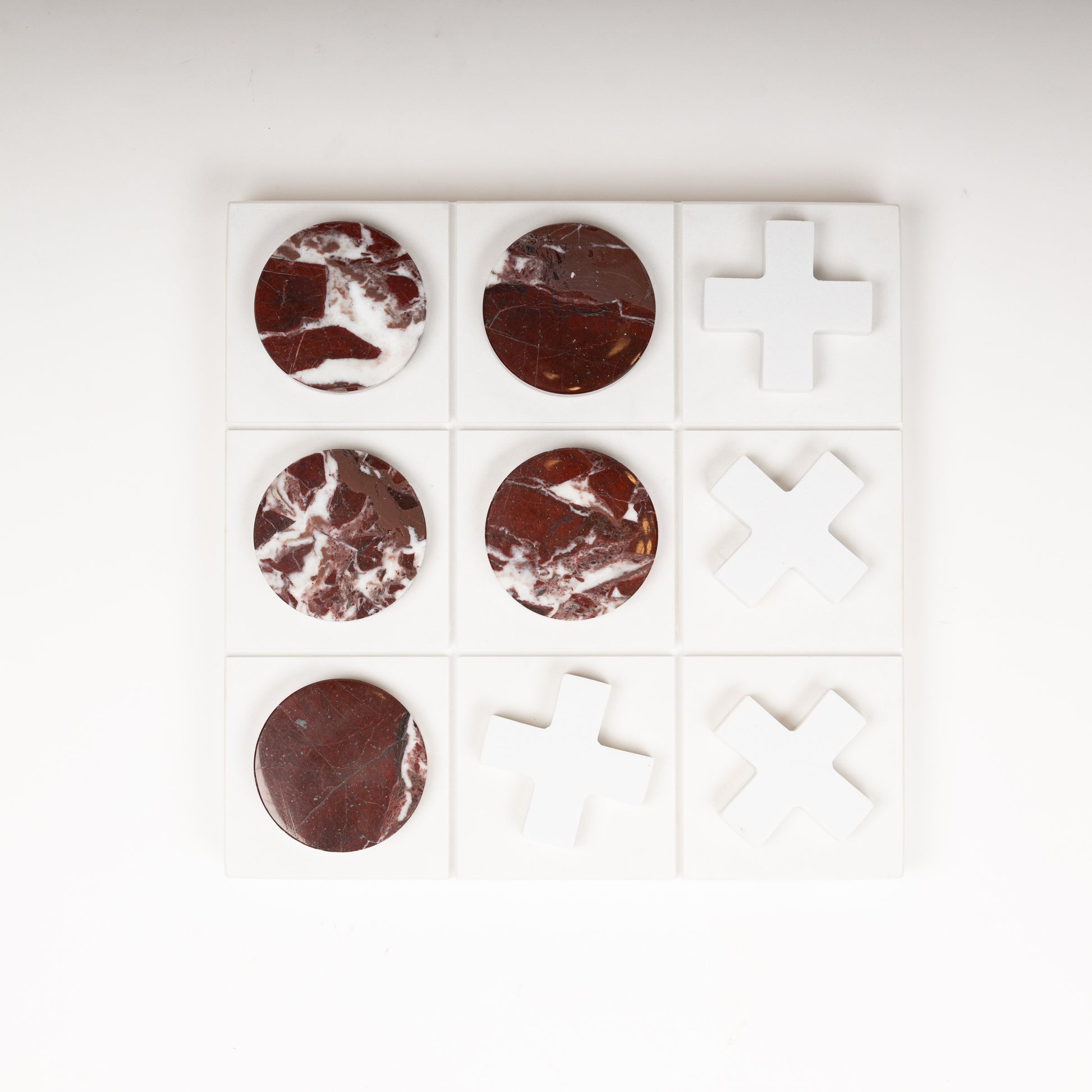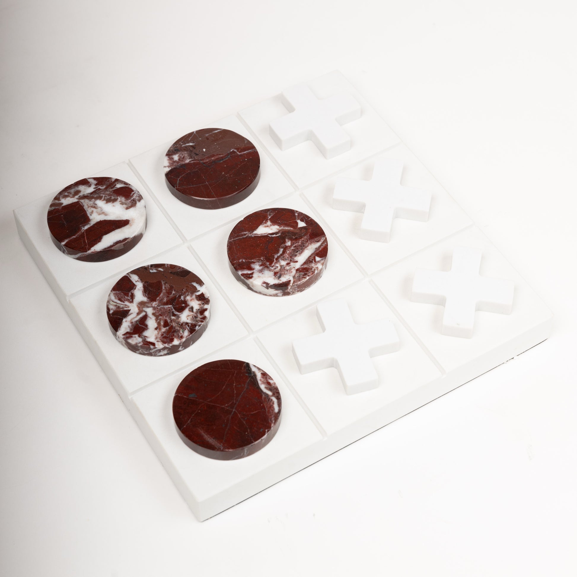 Elevate your game nights with this exquisite marble Tic-Tac-Toe set, crafted from premium white and deep red marble. The bold contrast between the white board and the rich red marble X's and O's creates a timeless and elegant aesthetic. Perfect as a functional game or a sophisticated décor piece for coffee tables, offices, or living rooms.