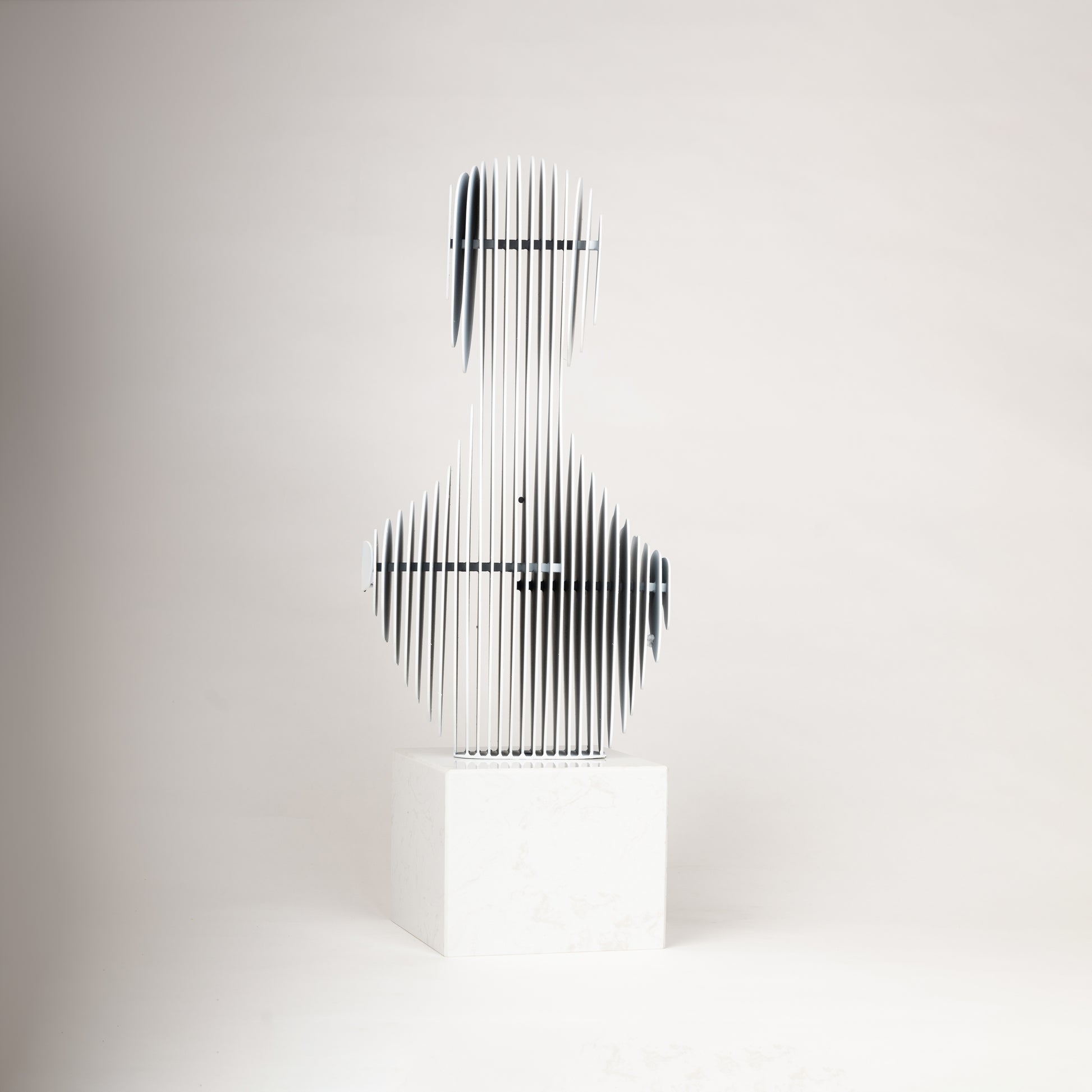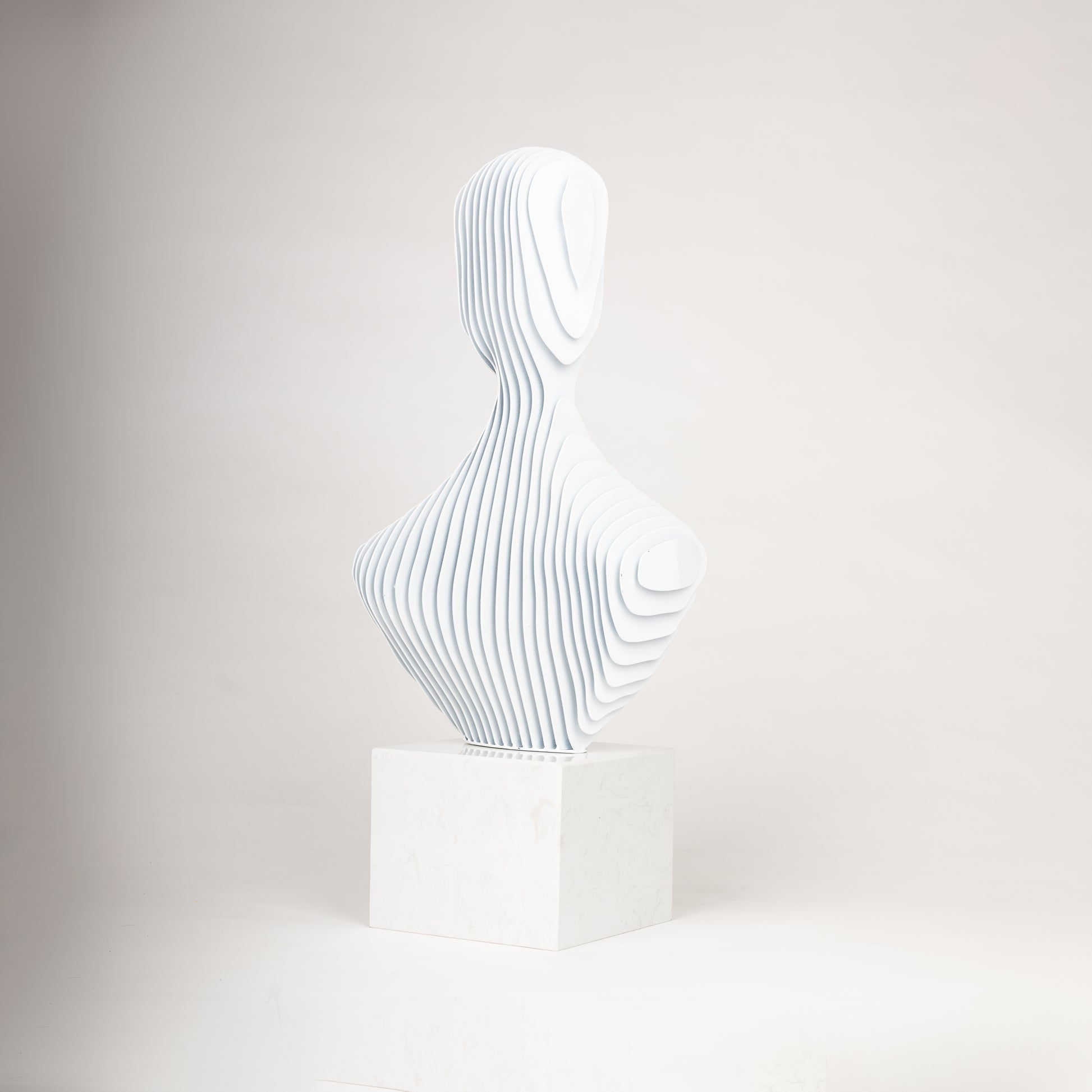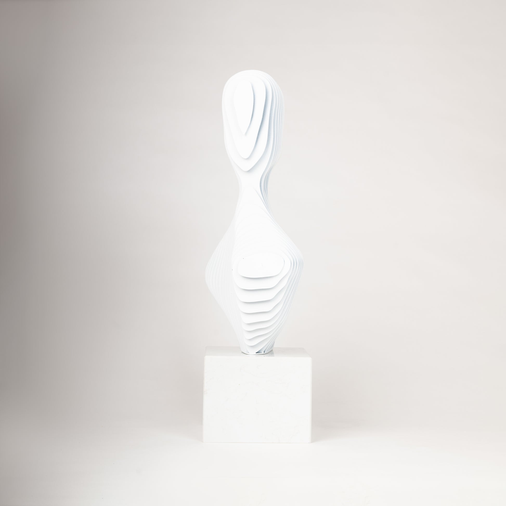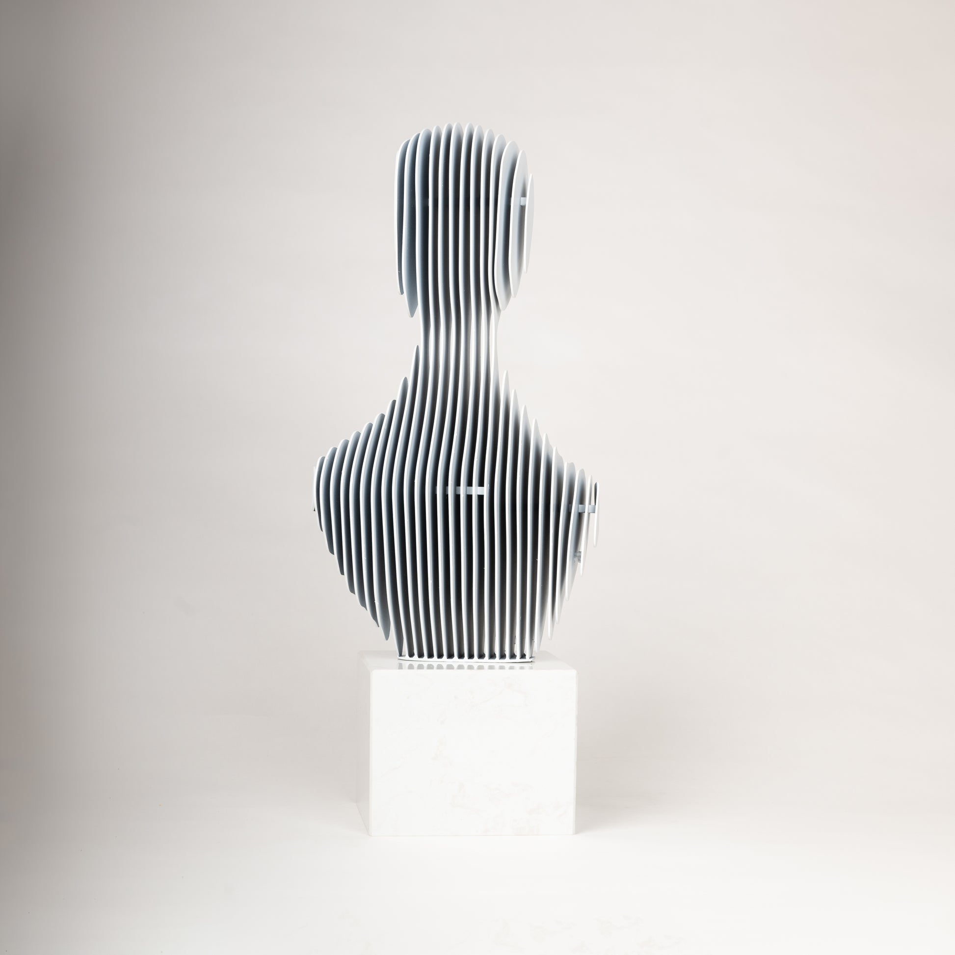 The Modern Layered Silhouette Sculpture is a striking piece of contemporary art that blends precision with fluidity. Composed of layered elements that create a dynamic, flowing form, this sculpture plays with light and shadow, offering a mesmerizing visual effect from different angles. Mounted on a sleek white base, its abstract human-like shape evokes movement and depth, making it an elegant centrepiece for modern interiors, offices, or galleries. A true statement of artistic innovation and minimalist sophistication.