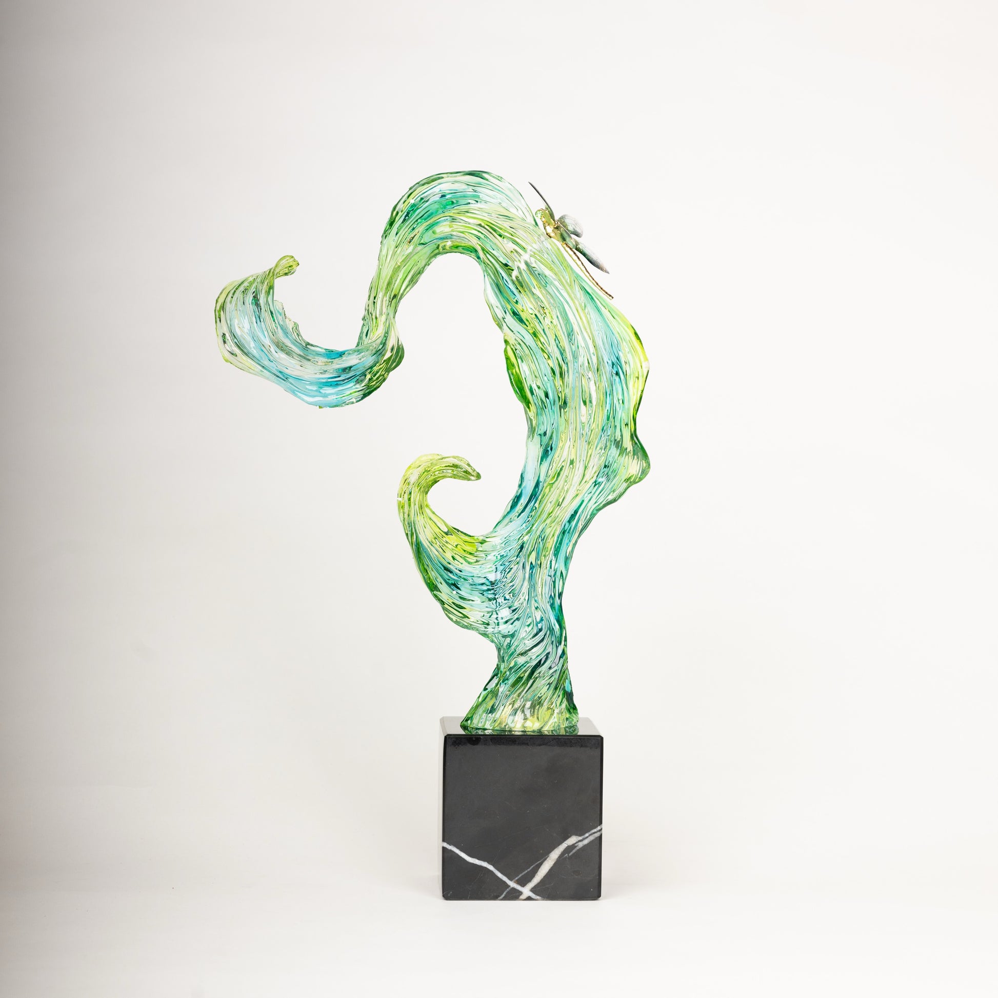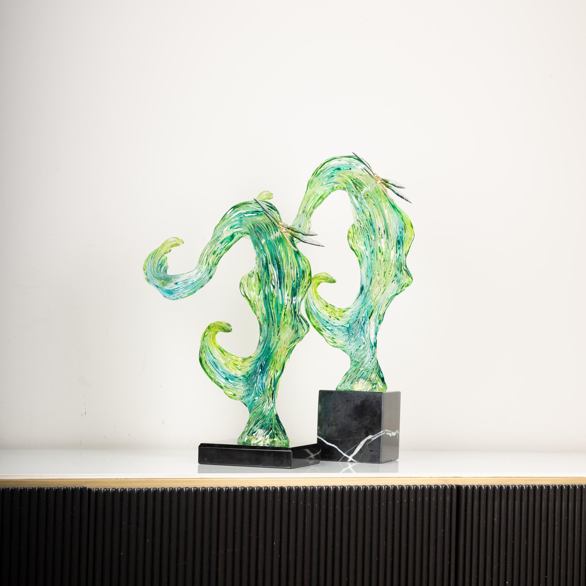 Inspired by the fluidity of nature, the Serene Flow Glass Sculpture set is a captivating piece that embodies movement and tranquillity. Crafted from high-quality glass, these sculptures feature graceful, wave-like curves in shades of green and blue, evoking the essence of flowing water or gentle breezes. Mounted on sleek black marble bases, these sculptures are perfect for adding a modern, artistic touch to your home or office. Whether placed on a console, shelf, or centrepiece, they bring a sense of harmony and sophistication to any space. Elevate your decor with this breath-taking fusion of art and nature!
